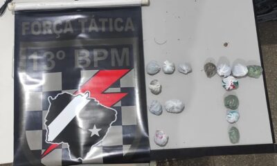 Policiais militares da Força Tática do 13º Batalhão localizaram e apreenderam 15 invólucros de maconha, cerca de 250 gramas, que estavam escondidos em um terreno baldio,...